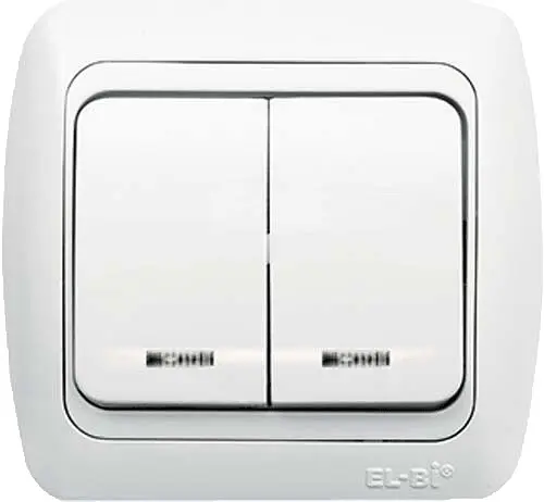Вимикач з двома клавішами та підсвіченням, використовується для вмикання / вимикання освітлювальної техніки, підключеної до електромережі. Виконаний в білому кольорі. Номінальна напруга – 220 В. Для установки в житлових, офісних і комерційних приміщеннях.