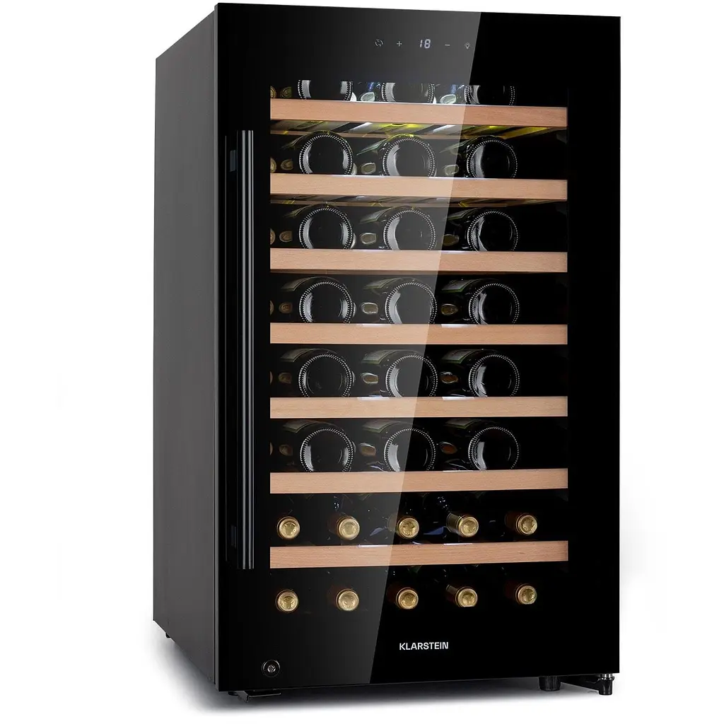 Заради любові до вина: винний холодильник Klarstein Barossa 50 Uno гарантує найкращу насолоду від вина, доводячи червоні або білі вина до ідеальної температури для пиття. Скляні передні дверцята забезпечують майстерну презентацію ваших винних скарбів, а внутрішнє освітлення, яке можна перемикати, додатково підкреслює пляшки, що зберігаються. Це робить винний холодильник стильним елементом не лише вдома, але й у барах та ресторанах.
