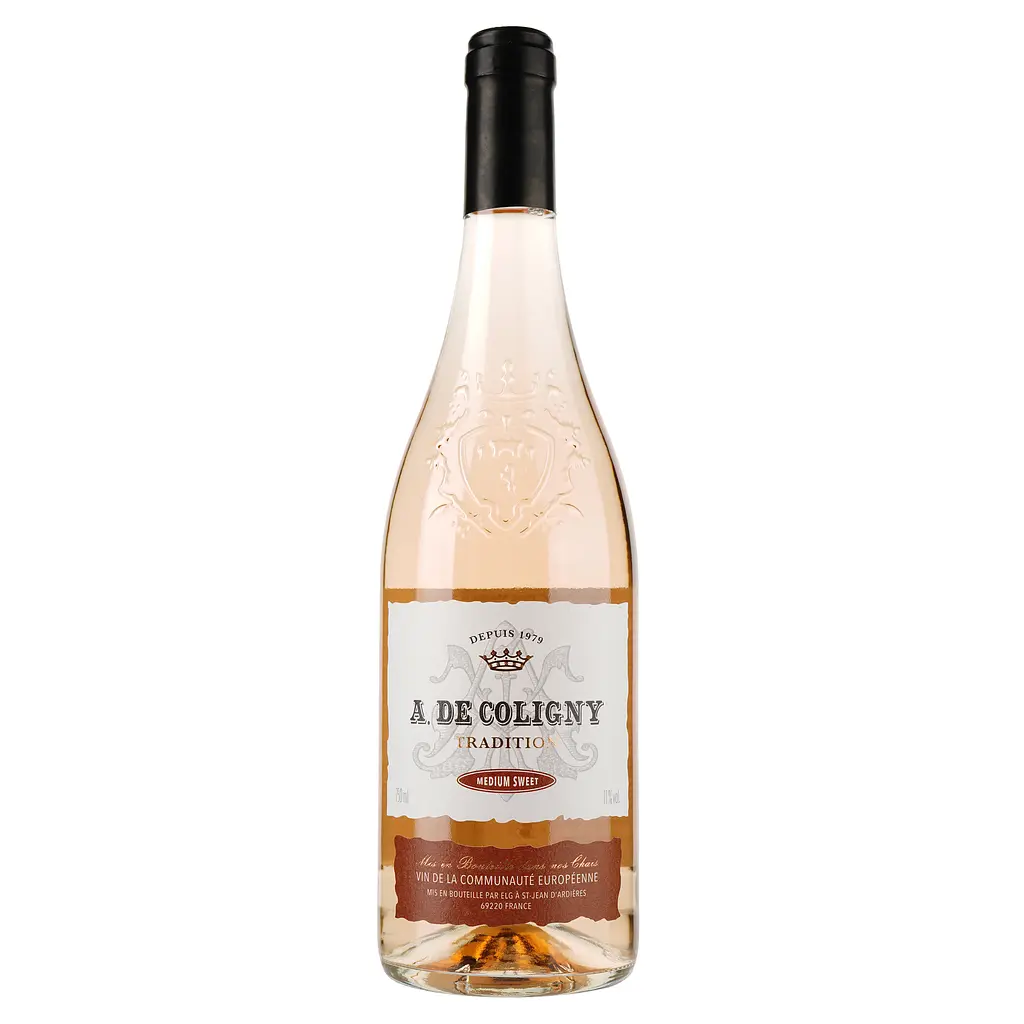 Вино A. De Coligny (А де Колігні) ніжно-рожевого кольору.