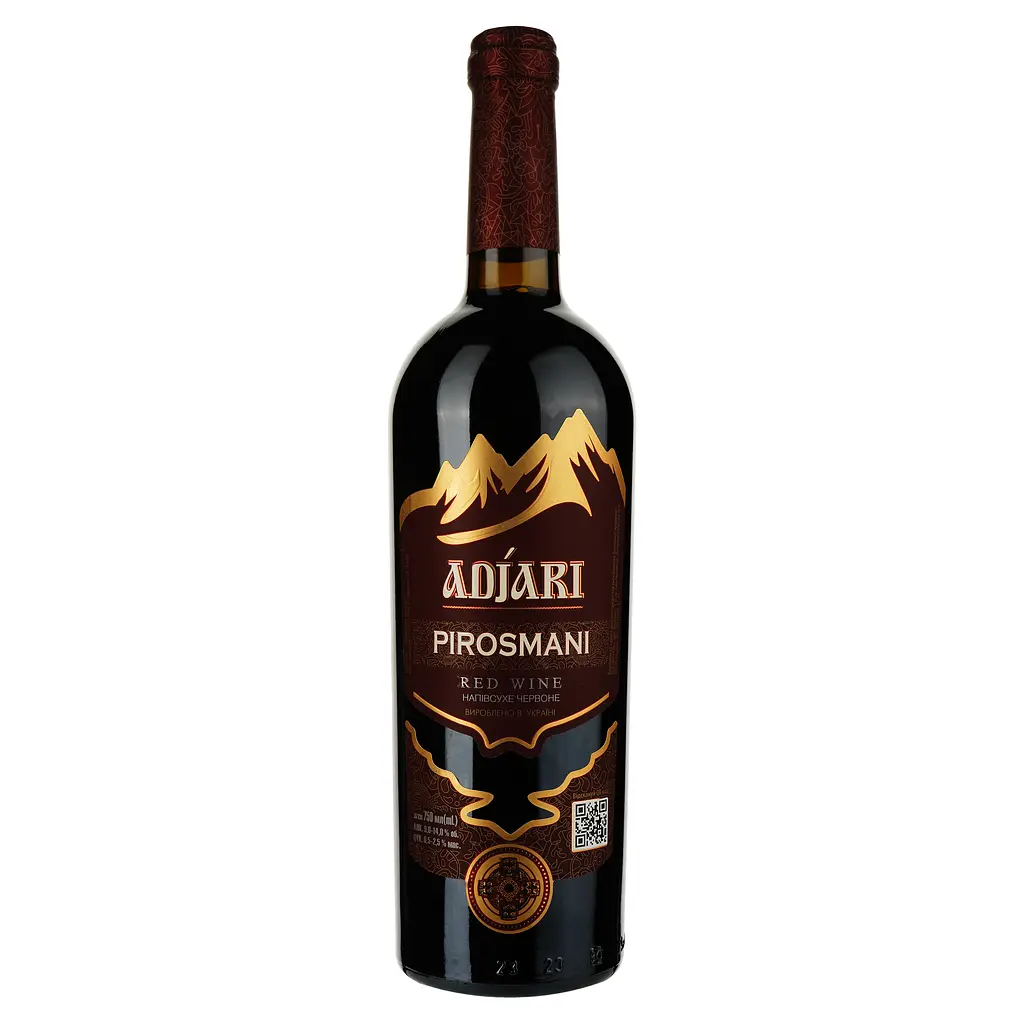 Вино Adjari Pirosmani розкривається в ароматі нотами ягід ожини, черешні, малини, фіалки та дикої сливи. Має м'який округлий смак із тонким присмаком ягід та ледь вловними нотами какао. Колір насичений рубін.