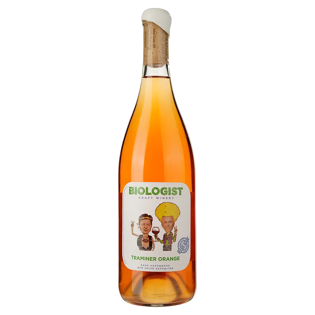 Вино Biologist Traminer Orange інтенсивного янтарного кольору з рожевим відтінком. Насичений аромат наповнений тонами сухофруктів, троянди, персика та прянощів. Смак сухий, фруктовий, з гармонійною кислотністю та довгим післясмаком.