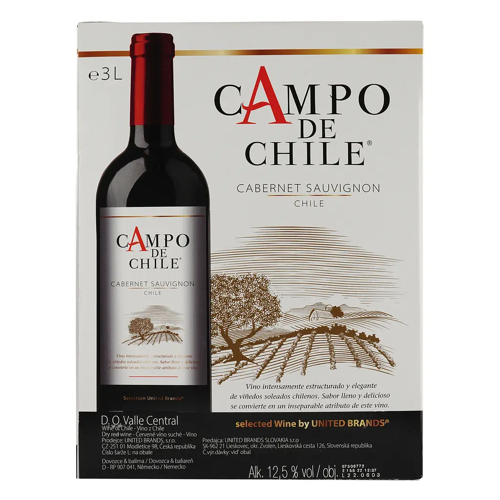 Вино Campo de Chile (Кампо де Чилі) Cabernet Sauvignon Bag-in-Box відрізняється елегантністю та користується великою повагою через свою насиченість, складність та різноманітність характеристик, зобов'язаних унікальним чилійським пейзажам.
