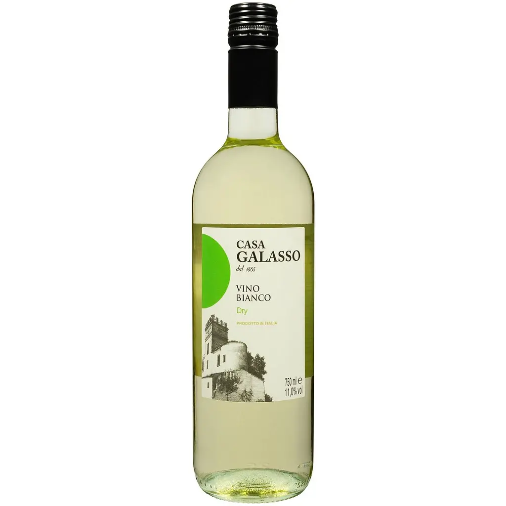 Вино Casa Galasso Vino Bianco - біле сухе вино світло-солом'яного кольору із зеленими відтінками, вирізняється яскравою свіжістю та гармонійним смаком. У його ароматі переважають ноти цитрусових фруктів, зеленого яблука і легких квіткових відтінків. Вино має легку текстуру і добре збалансовану кислотність, що надає йому освіжаючого характеру.