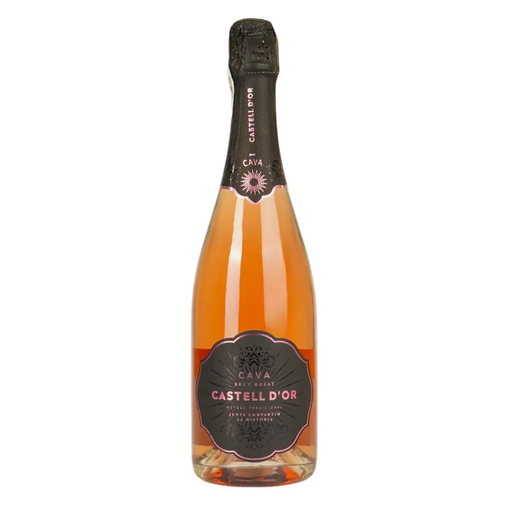 Вино ігристе Castell d'Or Cava Brut Rose блідо-рожевого кольору. Прохолодне і свіже, з ягідними нотами й чистим сухим післясмаком.