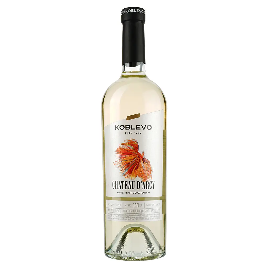 Вино Коблево Шато Д'Арсі виноградне напівсолодке біле. Вино виготовлено з винограду сорту Аліготе та суміші білих європейських сортів. Його сонячний солом'яний колір, ніжний тонкий квітковий аромат і гармонійний вишуканий смак є родзинкою, відрізняючою його від інших.