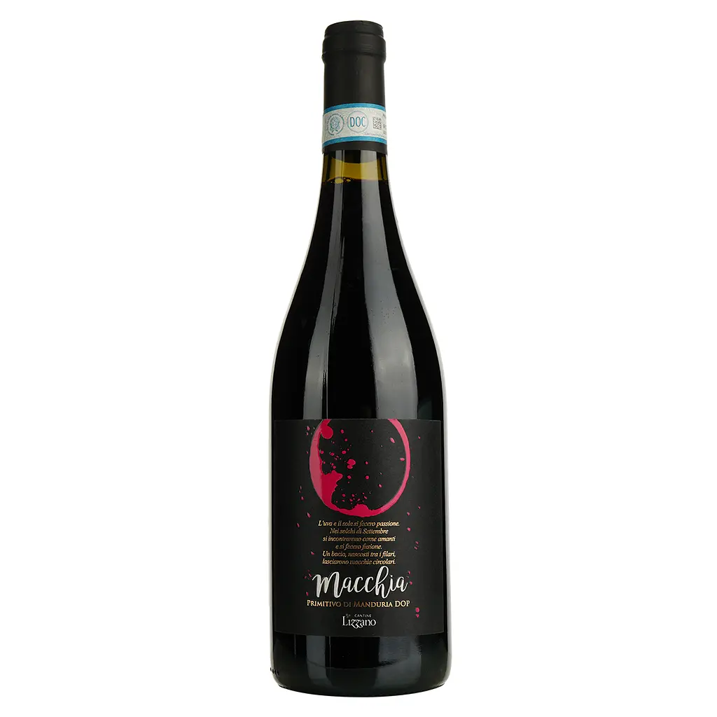 Вино Cantine Lizzano Macchia Primitivo di Manduria рубіново-червоного кольору з гранатовим відблиском. Аромат багатогранний, з нотами сливи, вишні, сухофруктів та легким відтінком ванілі. Смак прекрасно структурований, м’який, теплий. Післясмак тривалий, солодкуватий.