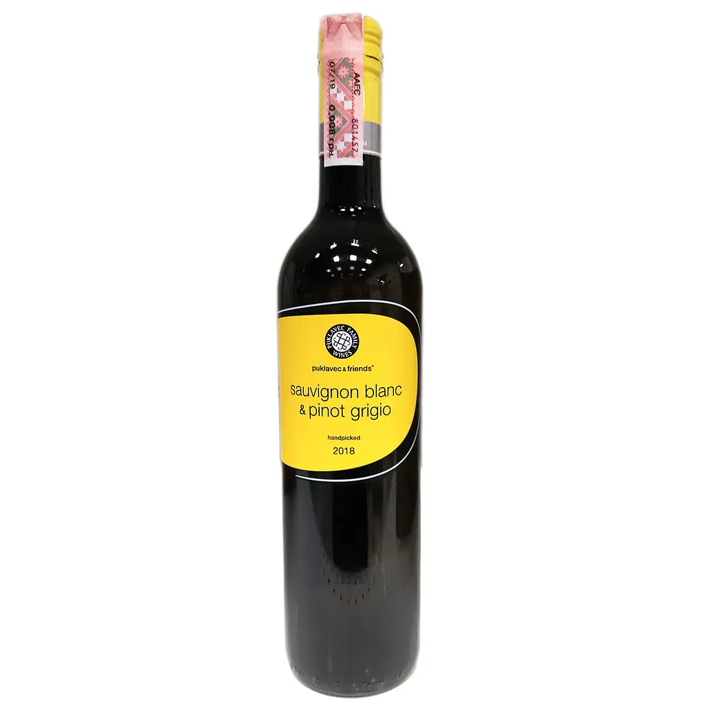 Вино Puklavec & Friends Sauvignon-Pinot Grigio золотисто-жовтого кольору з ледь вловимими відблисками. Аромат зачаровує свіжими, гармонійними тонами персика, лимона, мінералів і польових квітів. Смак м'який, елегантний, з цитрусово-мінеральними відтінками та пікантною кислинкою в стриманому післясмаку.