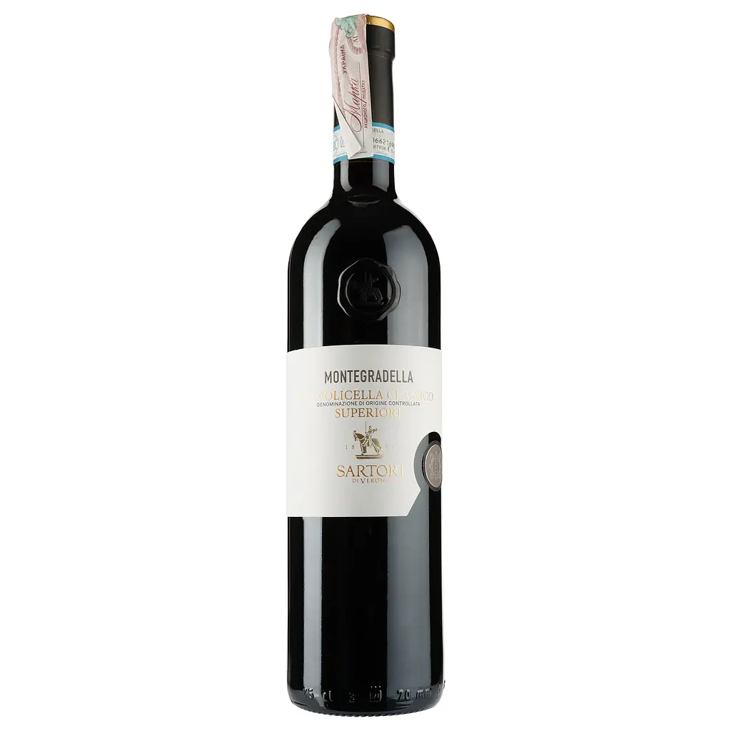 Вино Sartori (Сарторі) Valpolicella Classico Montegradella Superiore DOC має високу якість зі свіжим та яскравим смаком.