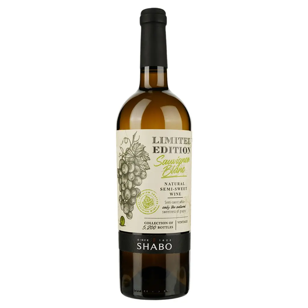 Вино Shabo (Шабо) Limited Edition Совіньйон Блан - Лімітована колекція вин, створена за особливою технологією зупинки бродіння холодом. Унікальність натуральної природно-напівсолодкої капсули Limited Edition – вино виходить напівсолодким без жодного грама доданого цукру, тут розкривається натуральна натуральна насолода виноградної ягоди та її аромат. Для створення природно-напівсолодких вин використовується виноград із кращих ділянок терруару Шабо, який досяг необхідного рівня зрілості, балансу кислотності та солодощі. Готовність до збирання врожаю винограду стати вином визначається на щоденних дегустаціях та за лабораторними показниками. Виноград дбайливо збирається вручну в ящики та для збереження свіжості протягом 15 хвилин рефрижераторами доставляється на виробництво. Коли вино в процесі бродіння досягає необхідного рівня цукру (солодкості), процес бродіння зупиняється швидким охолодженням до -4°C.