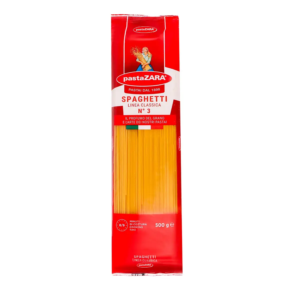 Pasta Zara Spaghetti №3 – класичні італійські спагеті, виготовлені з високоякісної манної крупи з твердих сортів пшениці. Вони мають ідеальну товщину, що дозволяє їм рівномірно готуватися та утримувати соуси, розкриваючи справжній смак італійської кухні.