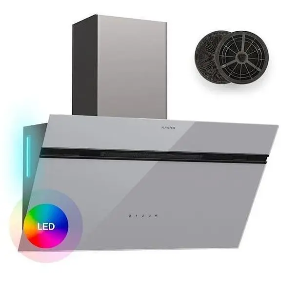 Витяжка Klarstein Alina особливо приваблива не тільки завдяки своєму елегантному зовнішньому вигляду, а й завдяки опціональному перемиканню зовнішнього освітлення з дев'ятьма різними кольорами. Таким чином, настінна витяжка без головки надає кожному кухонному гарнітуру.
