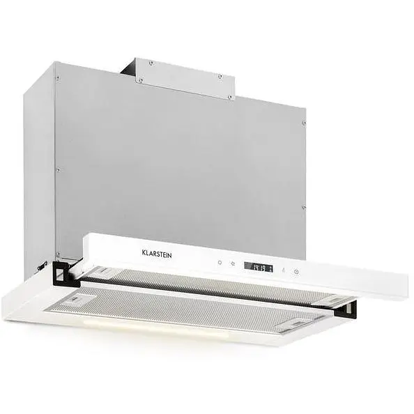 Прихована потужність: висувна витяжка з плоским екраном Klarstein Mariana Neo 60 вражає вас потужною продуктивністю витяжного повітря до 640 м³/год на 3 рівнях потужності та температурою світла, що вільно регулюється від 3200 до 6500 Кельвінів. Це означає, що ви завжди можете створити правильні умови освітлення на своїй кухні. Управління здійснюється за допомогою чіткої сенсорної панелі з рідкокристалічним дисплеєм. Наприклад, схований за вашою полицею для спецій, з-під шафи визирає лише засклена передня частина. Звичайно, ви можете використовувати Mariana Neo 60 як циркуляційну або витяжну.
