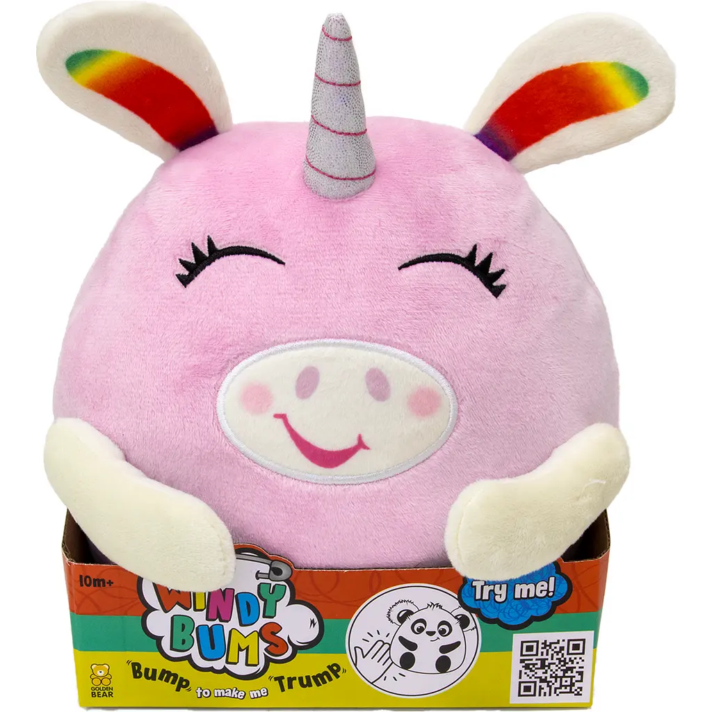 Єдиноріг - інтерактивна м'яка іграшка із серії Windy Bums, яка розвеселить не лише малечу, але і батьків. Іграшка після вмикання реагує на дотик, починає рухатися по підлозі чи поверхні - до 30 секунд. Рух активує різноманітні звуки та веселе хіхікання. Заохочує рух і дослідження. Стимулює органи чуття через звук і сприяє розвитку моторики.