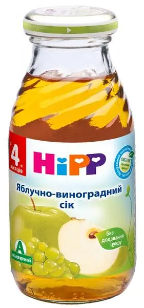 Яблучно-виноградний сік HiPP (Хіпп) - це смачний і корисний сік, який складається з натуральних фруктів та збагачений вітаміном С для міцного імунітету малюка.