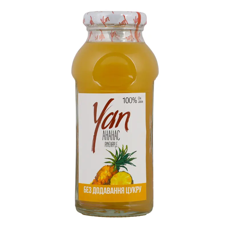 Ананас багатий життєво важливими для людського організму мінералами і вітамінами, при цьому, він вважається малокалорійним фруктом. Речовина бромелайн, що міститься в ньому, сприяє спалюванню жирів і навіть омолодженню. Саме тому ананасовий сік такий корисний, крім того, що має незрівнянний смак. Ананасовий сік YAN зроблений зі стиглих ананасів - без додавання цукру. У кожному його ковтку відчувається чудовий аромат і чудова свіжість цього тропічного плоду.