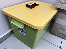 Чудові ящики, вміщають досить великий об'єм! Зручні замочки, щільно притискають кришку. Розмір підходить для більшості стандартних шаф. Приємний зелений відтінок, але жовтий колір кришки набагато темніший, ніж на фото і особисто мене трохи дратує.