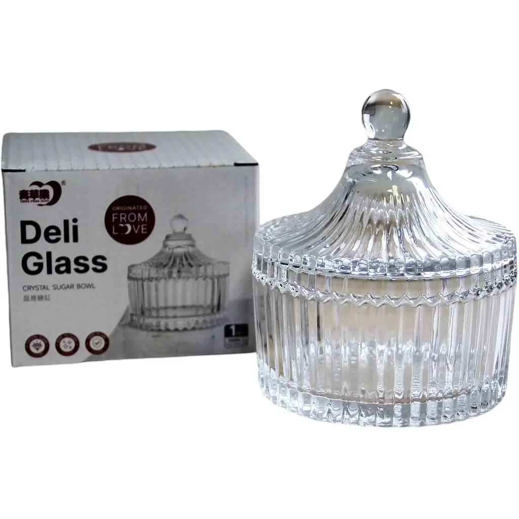 Цукорниця виготовлена з якісного скла, що не вступає із вмістом у реакцію та не виділяє шкідливих речовин. Прозорий матеріал дозволяє бачити вміст. Скляна цукорниця є екологічно чистою, тому що при виробництві використовується сировина, технології, матеріали відповідно до прийнятих нормативів. Цукорниця може використовуватися для подачі цукерок, цукру, частування.