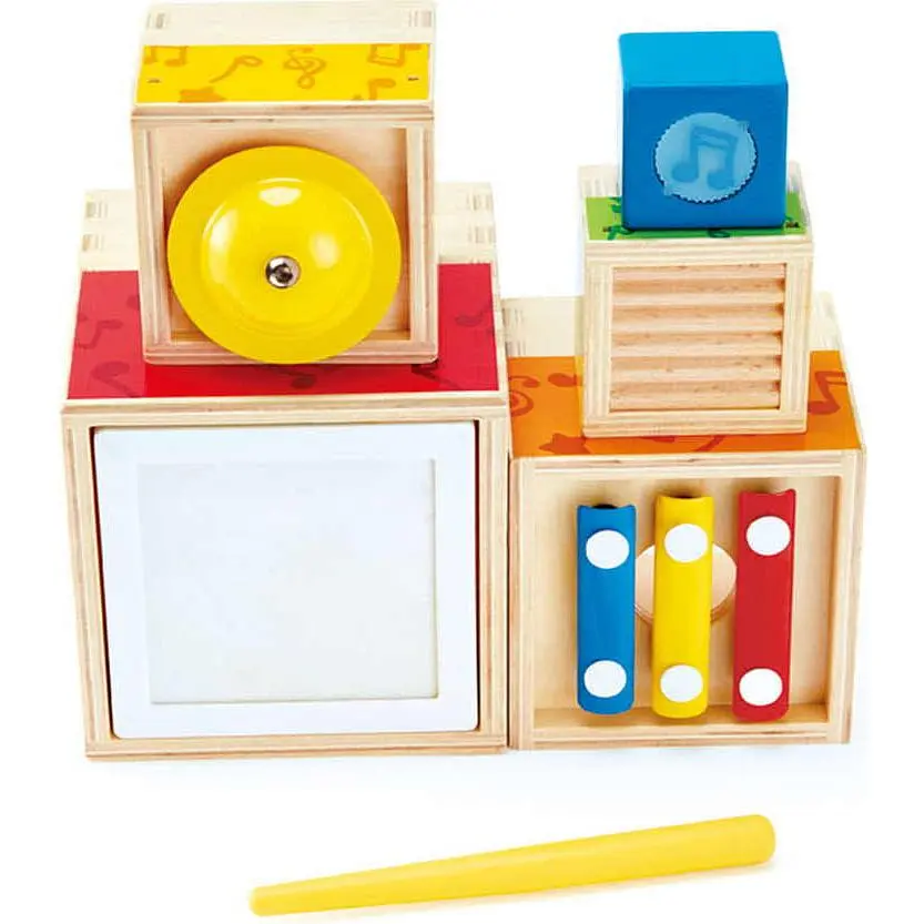 Набір розвиває зорово-моторну координацію, почуття ритму, музикальний слух і пам'ять. Переставляючи музичні кубики, діти також дізнаються про форми та простір.