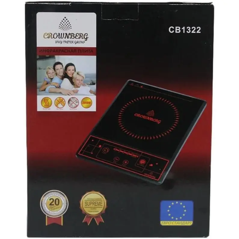 інфрачервона плита, Crownberg CB-1322, енергоефективна кухонна техніка, швидке приготування, керамічна поверхня, LED-дисплей, таймер, захист від перегріву, індукційна плита, електроплита.