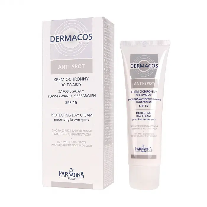 Польський бренд Farmona створив продукт, який бореться з різними недосконалостями шкіри. Денний крем для обличчя Farmona Dermacos Anti - spot допомагає проти пігментації, він має захист SPF 15. До складу засобу увійшли натуральні компоненти. Вони глибоко живлять вітамінами і мінералами, нормалізують рівень вологи в клітинах і перешкоджають її випаровуванню. Крем