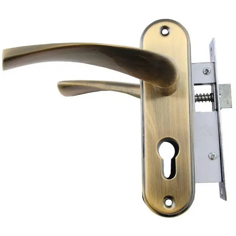 Дверна ручка на планці з корпусом у комплекті із врізним замком під циліндр. Виготовлена з комбінації міцного металу (планка) та алюмінію (ручка), що забезпечує довговічність та зносостійкість. Підійде для встановлення на міжкімнатні або вхідні двері.