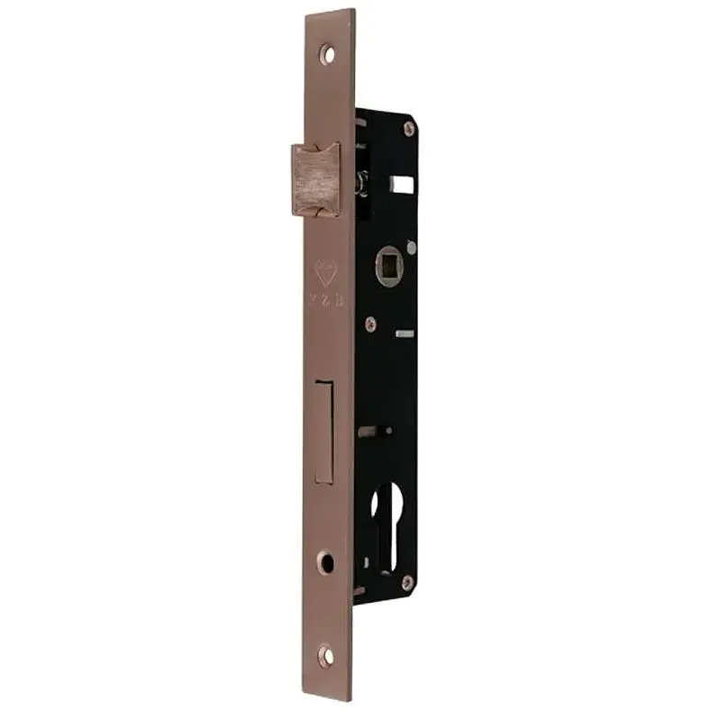 Врізний замок FZB 85 x 25 мм 10-06 AB (бронза) – якісний замок з міжосьовою відстанню 85 мм та розміром язичка 25 мм, призначений для надійного замикання дверей. Металевий корпус з бронзовим покриттям (AB) забезпечує довговічність та привабливий зовнішній вигляд, стійкий до корозії. Замок легко встановлюється та сумісний із стандартною дверною фурнітурою. Відмінний вибір для житлових та комерційних приміщень.