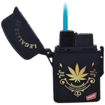 Запальничка PROF Turbo Wild&Free Malibu Black and Gold. Ця запальничка користується великою популярністю завдяки своєму якісному складанню і компактним розмірам. Виконана з міцного пластику який стійкий до зовнішніх механічних пошкоджень, а завдяки чорній матовій поверхні не залишаються сліди використання у вигляді відбитків пальців тощо. Вбудований регулятор полум'я дає змогу налаштувати інтенсивність потоку турбо вогню, виходячи з ситуації та вподобань. На корпусі є ескізи канабісу золотистого кольору.