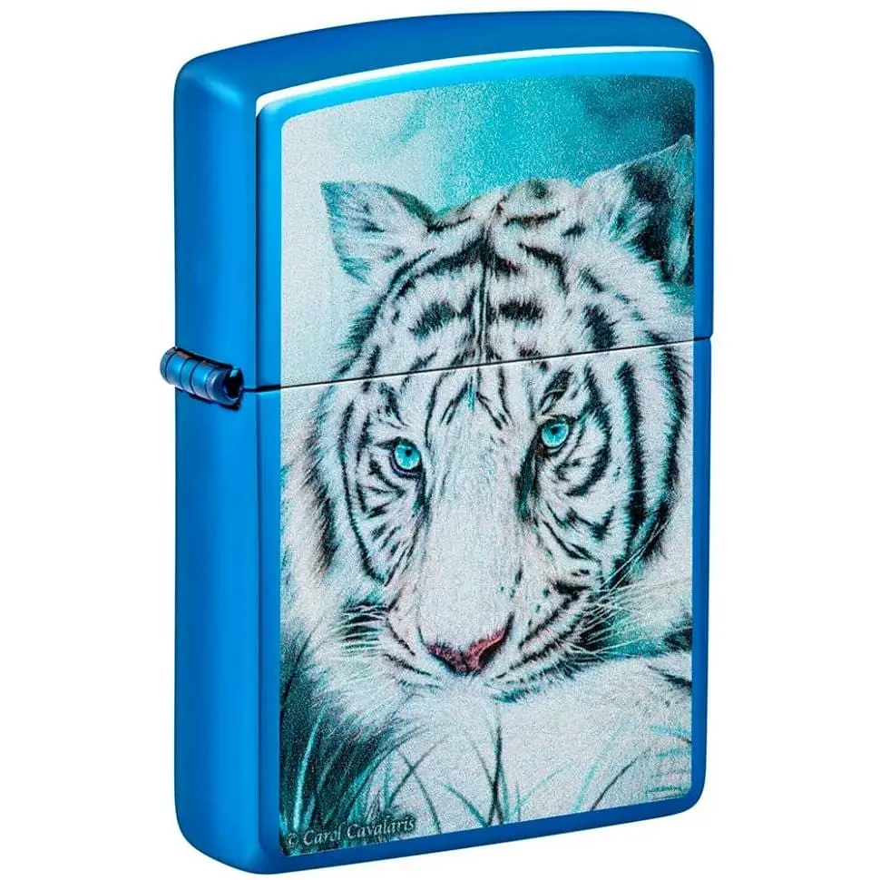 Стильна, солідна бензинова запальничка, яку презентує американська компанія Zippo. Це - найуніверсальніший і найнадійніший аксесуар у всьому світі. Її може використовувати будь-яка людина, як чоловік, так і жінка. Запальничка виконана в синьому кольорі із зображенням тигра. Якість цього виробу - відома в усьому світі, а довічна гарантія від виробника тільки підтверджує цей факт. Покриття зроблено за технологією PVD, а це означає, що вона стійка до подряпин і мікротріщин. Запальничка не заправлена бензином. Для її заправки виробник рекомендує використовувати оригінальний бензин Zippo.