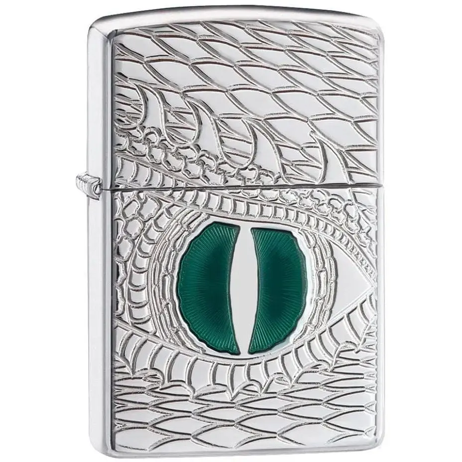 Запальничка Zippo Dragon Eye. Класична запальничка Zippo виконана в сріблястому кольорі з візерунками ока дракона, зі спеціальним покриттям, що захищає від подряпин та інших негативних зовнішніх факторів. Такий аксесуар купується раз і назавжди завдяки бездоганній якості виробу. Американські запальнички Zippo відомі в усьому світі і мають багату історію, зарекомендували себе як надійні. І не спроста - на кожну Zippo поширюється довічна гарантія від виробника.