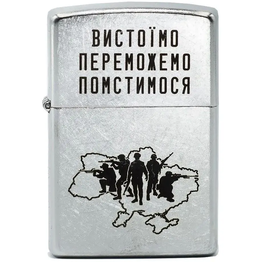 Запальничка Zippo Endure Win Revenge. Це запальничка, яка вирізняється своїм міцним і надійним корпусом, виконаним із латуні. На передній частині запальнички зображено контур України з силуетами ЗСУ та національним закликом. Запальничка Zippo Endure Win Revenge має кришку, яка надійно закривається і запобігає випаровуванню палива. Гніт надійно захищений від вітру та інших погодних умов спеціально розробленим компанією бортиком з отворами, що дає змогу використовувати запальничку в будь-яких ситуаціях. Однією з особливостей запальнички Zippo Endure Win Revenge є її здатність зберігати свою працездатність навіть після багаторазового використання. Заправляється запальничка спеціальним очищеним паливом Zippo, яке не залишає неприємного запаху і забезпечує роботу щонайменше понад 7ми днів. Запальничка Zippo Endure Win Revenge - це відмінний вибір для любителів стильних і надійних аксесуарів. Вона може використовуватися як для повсякденного використання, так і як унікальний подарунок для друзів і близьких.
