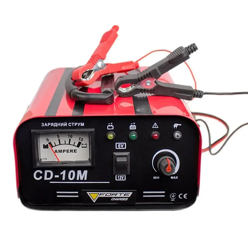 Зарядний пристрій FORTE CD-10М (70052) є незамінним аксесуаром для власників автомобілів та мотоциклів, що прагнуть забезпечити надійне функціонування своїх транспортних засобів. Цей пристрій вирізняється своєю здатністю заряджати акумулятори з вихідною напругою 12 та 6 В, що робить його універсальним рішенням для різних типів акумуляторів.