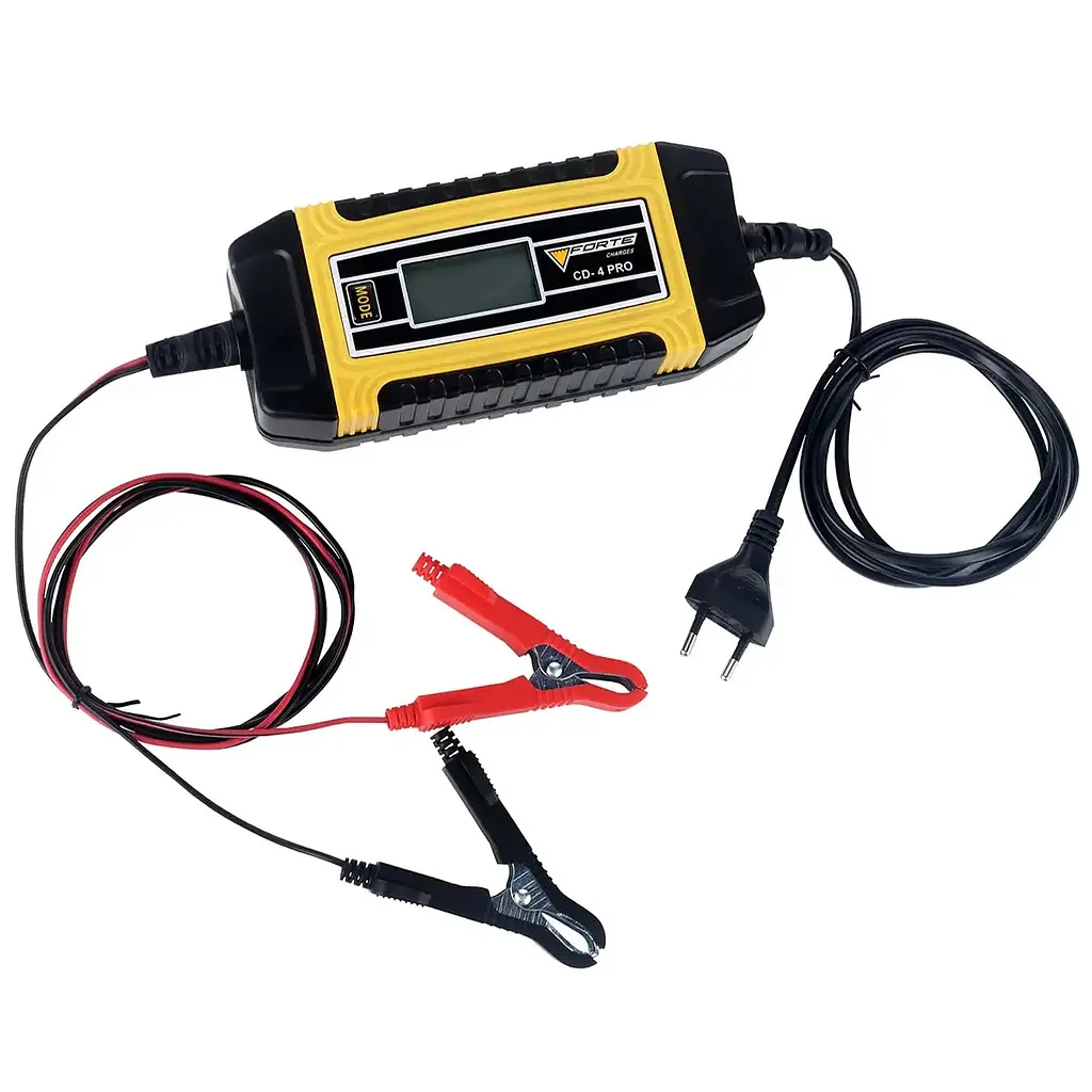 Зарядний пристрій Forte CD-4 Pro – це універсальний зарядний пристрій для акумуляторів із напругою 6 / 12 В та ємністю до 140 А/год. Компактний та ефективний, він забезпечує безпечне та оптимальне заряджання завдяки багатоступеневій технології.