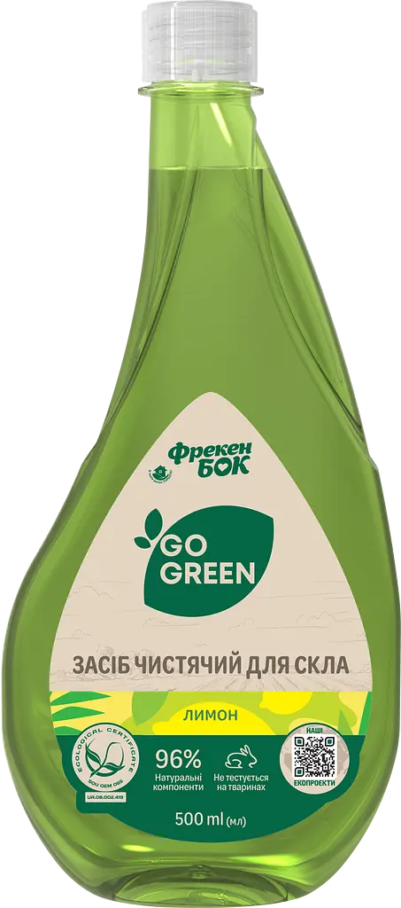 Засіб для чищення Фрекен Бок Go Green розроблений для ефективного очищення різних скляних і дзеркальних поверхонь.