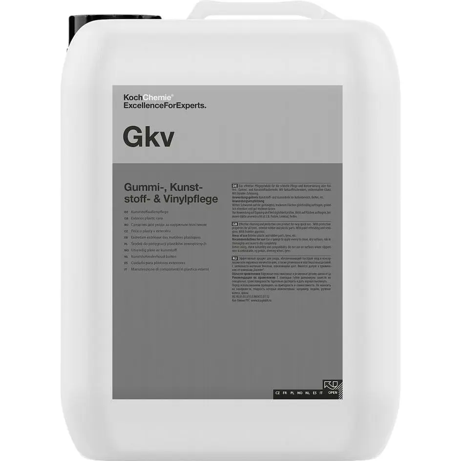 Засіб для догляду за гумою та пластиком Koch Chemie Gummi-, Kunststoff- & Vinylpflege - швидкодійний очищувач та освіжувач для гумових поверхонь, пластику та вінілу. Ефективний продукт для швидкого догляду за матовими поверхнями з подальшою консервацією, без зайвого блиску.