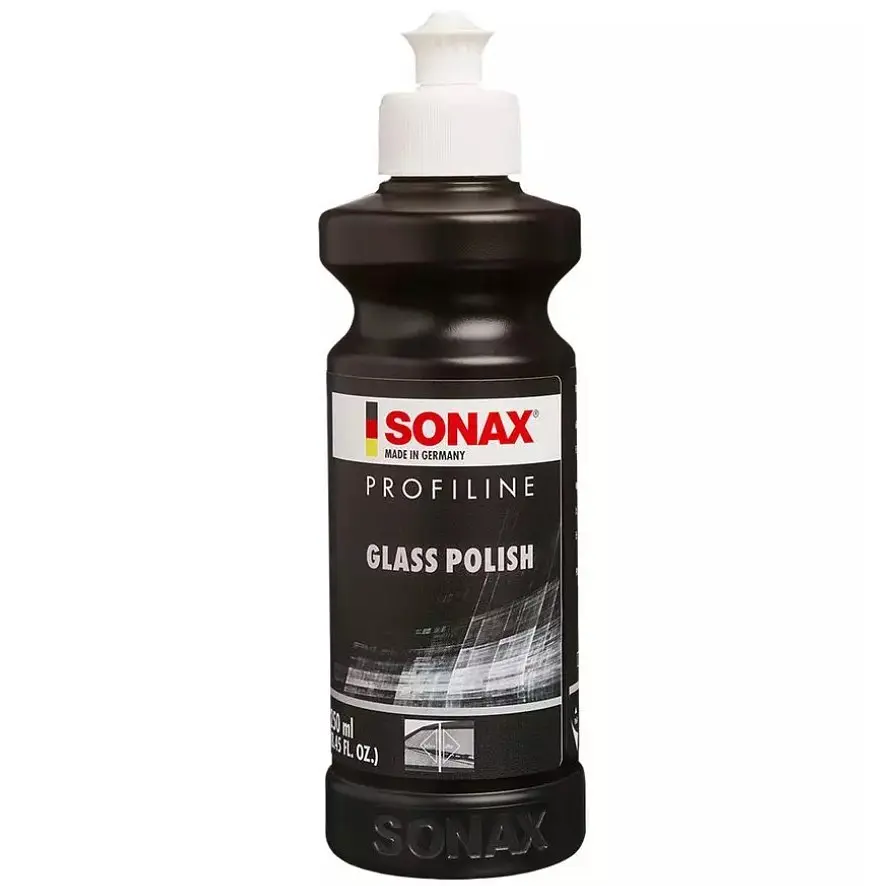 Засіб для хіміко-механічного полірування скла з оксидом церію Sonax ProfiLine призначений для усунення подряпин і плям від неякісних щіток склоочисника, абразивних частинок дорожнього пилу, снігу, льоду, бруду та інших з поверхні вітрового, заднього та бокового скла.