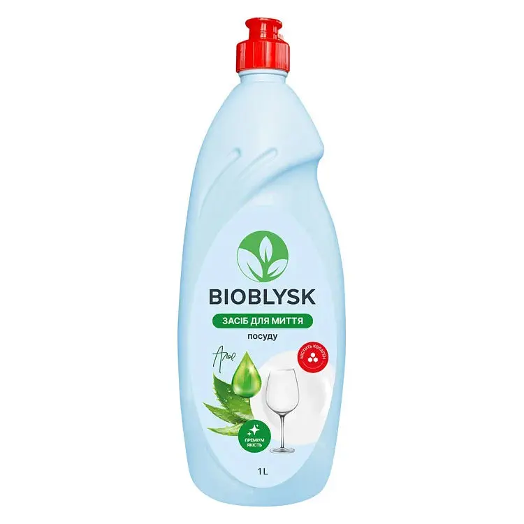 Засіб для миття посуду BioBlysk Алое утворює густу піну, тому є дуже економічним: навіть однієї краплі вистачить, щоб помити у 2 рази більше посуду, аніж зазвичай. Завдяки гліцерину та колагену засіб не сушить шкіру.