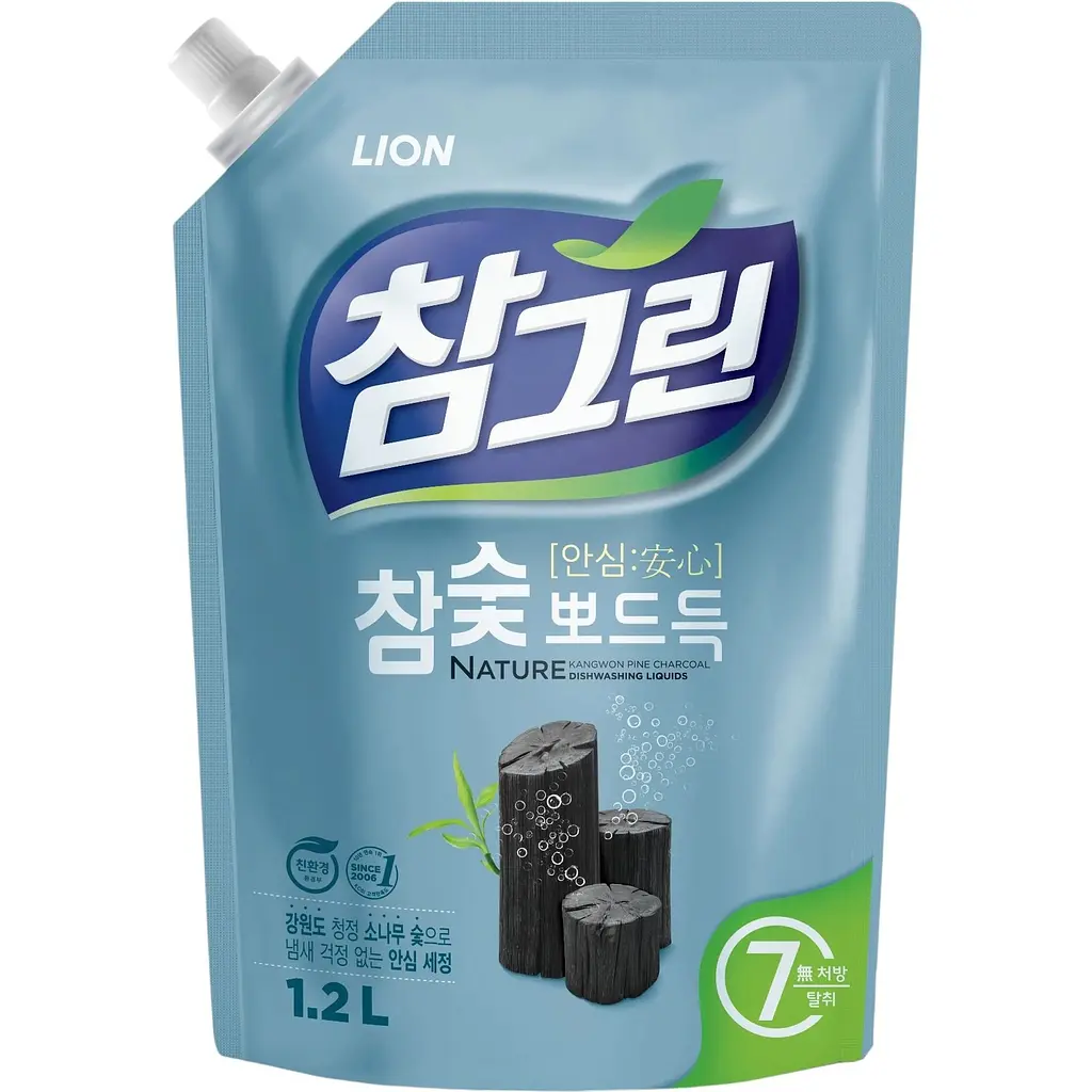 Засіб для миття посуду Lion Chamgreen Деревне вугілля - подбає про чистоту посуду.