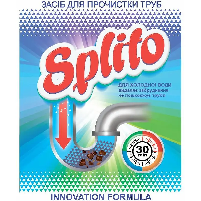 Засіб для прочищення труб Splito для холодної води – ефективно розчиняє засмічення та усуває неприємні запахи. Діє швидко, не пошкоджує труби. Відмінний помічник у догляді за каналізацією в своїй ціновій категорії!