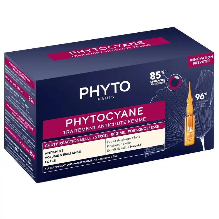 Засіб проти випадання волосся Phyto Phytocyane Anti Hair Loss Reactional Treatment Women – це догляд, призначений для боротьби з реактивним випаданням волосся у жінок: стрес, дієта, після вагітності, зміна сезону. Показаний при масивному випаданні волосся (випадання волосся пучками), раптовому (менш як 3 місяці) та дифузному (по всій шкірі голови). Його формула поєднує в собі екстракт гінкго білоба, протеїни шовку та запатентований екстракт тюльпана для видимих результатів з першого місяця.