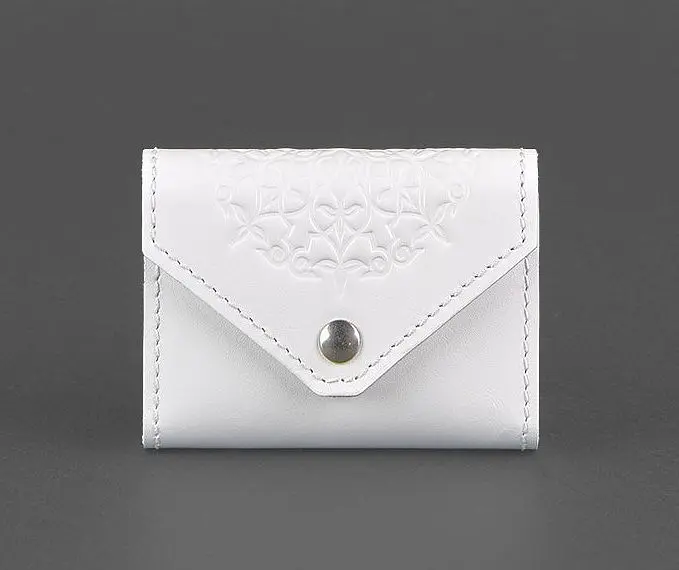 Кард-кейс виготовлений вручну з білосніжной натуральной шкіри високої якості. Має три відділення, закривається на міцну кнопку.