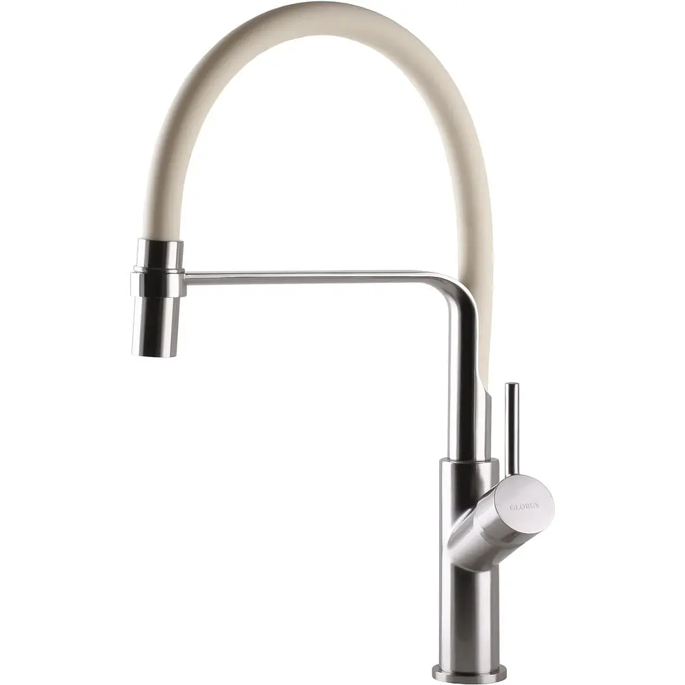 Змішувач для кухні Globus Lux DENVER Flex GDF-32-08-06 Сталь-Слонова кістка Гофровилив, латунь