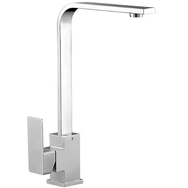 Змішувач для кухні одноважільний. Корпус виготовлений із нержавіючої сталі, що значно збільшує термін експлуатації змішувача. Використовується безшумний керамічний картридж Ø35 з підвищеним ресурсом, а також аератор що пом'якшує та економить витрати води. Відмінно поєднується з кухнями у стилі hi-tech.