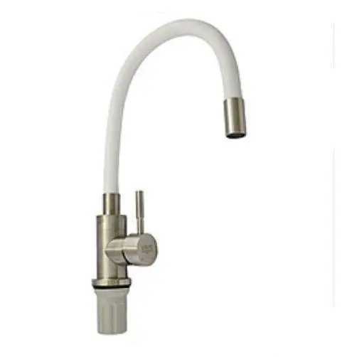 Змішувач для кухні одноважільний, гнучкий гусак. Корпус виготовлений із нержавіючої сталі за новітньою технологією "лиття під тиском", що значно збільшує термін експлуатації змішувача. Використовується безшумний керамічний картридж Ø35 з підвищеним ресурсом, а також аератор що пом'якшує та економить витрату води.