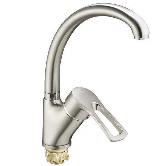 Змішувач для кухні одноважільний. Корпус виготовлений із високоякісної латуні, що значно збільшує термін експлуатації змішувача. Використовується безшумний керамічний картридж Ф40 з підвищеним ресурсом, а також аератор що пом'якшує й економить витрату води.