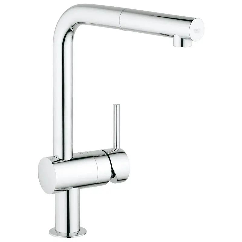 Кухонний латунний змішувач Grohe Minta з висувною лійкою виготовлений із високоякісної латуні з хромованим покриттям, яке запобігає утворенню вапняного нальоту. Завдяки висувній формі виливу можна легко промивати фрукти, овочі, очищати посуд, набирати великі ємності без необхідності ставити їх в мийку. Управління температурою та напором води здійснюється за допомогою зручного важеля. Компактна модифікація дозволяє заховати шланг всередині виливу, маскуючи його під стандартний змішувач, а високий поворотний вилив дозволить направити струмінь води в потрібну сторону.
