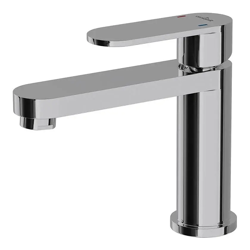 Одноважільний урізний змішувач для раковини з донним клапаном S951-147 серії Elio від Cersanit виготовлений із високоякісної латуні з хромованим покриттям і має стаційний злив із виносом 13.1 см. Модель встановлюється на один отвір і комплектується шлангами підведення води.