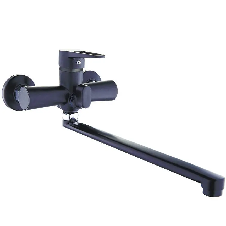 Змішувач для ванни один важільний, гусак 35 см. Корпус виготовлений за новітньою технологією «лиття під тиском», що значно збільшує термін експлуатації змішувача. Використовується безшумний керамічний картридж Ф35 з підвищеним ресурсом, а також аератор що пом'якшує та економить витрату води. Комплектується двошаровим душовим шлангом.