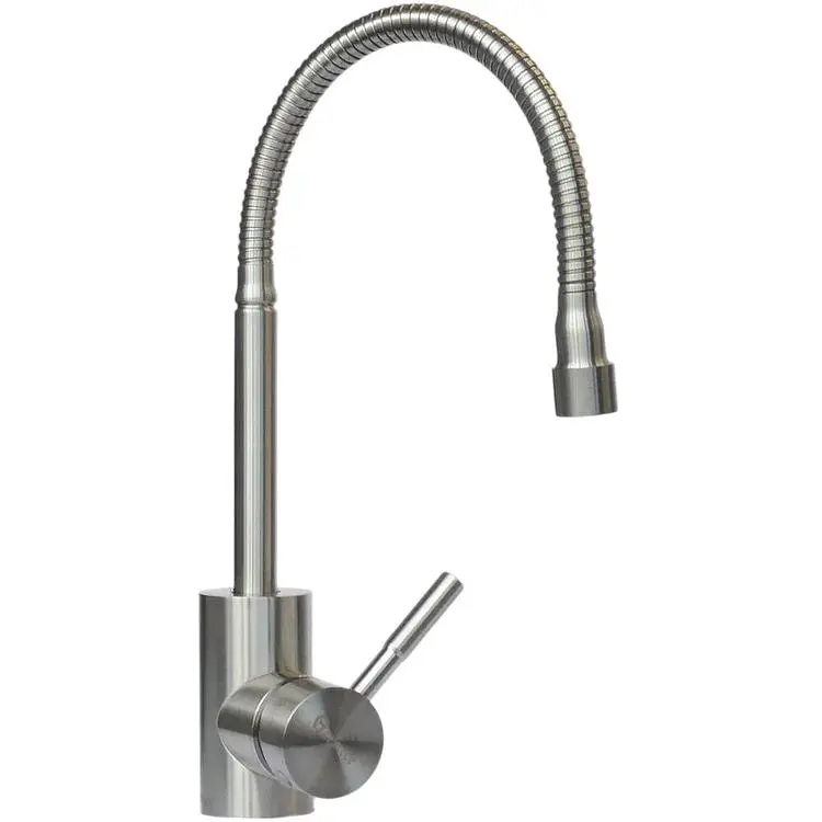 Змішувач виготовлений з високоякісної нержавіючої сталі SUS 304, що гарантує надійність та тривалий термін служби. Його сірий колір надає йому спокійний та вишуканий вигляд, ідеально вписуючись в сучасний інтер'єр кухні.