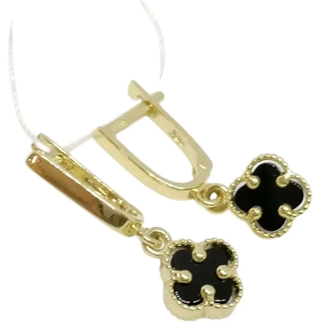 Сережки з лимонного золота 585 проби з оніксом