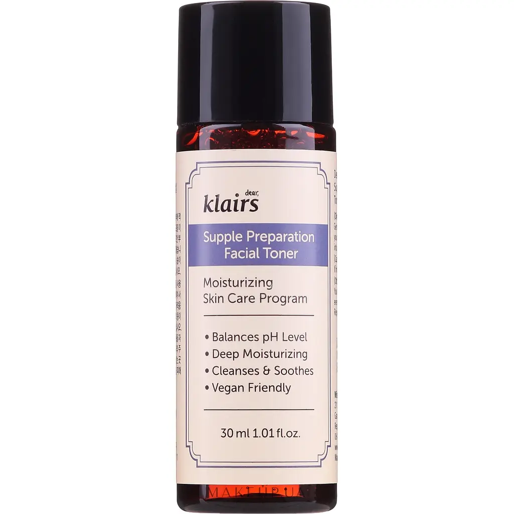 Продукт знижує чутливість, живить корисними речовинами і регулює роботу сальних залоз. Він запускає механізм регенерації, підтримує нормальний рівень ліпідного балансу і запобігає появі постакне. Klairs Supple Preparation Facial Toner покращує колір і мікрорельєф, перешкоджає закупорювання пор і захищає шкірний покрив від негативного впливу факторів зовнішнього середовища.